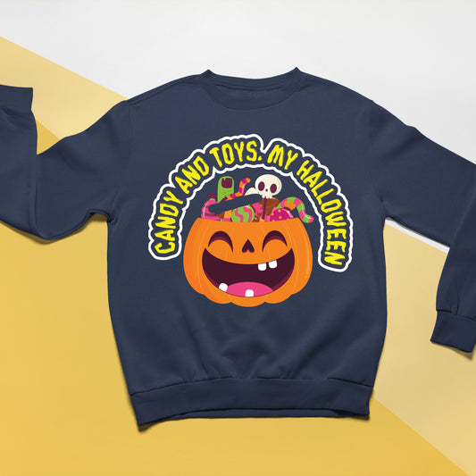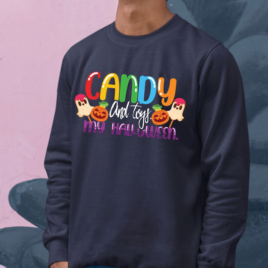 Halloween Candy and Toys Sweatshirt, Halloween Gift Sweatshirt, Halloween Sweater, Cute Halloween Sweatshirt, Funny Halloween Sweatshirt