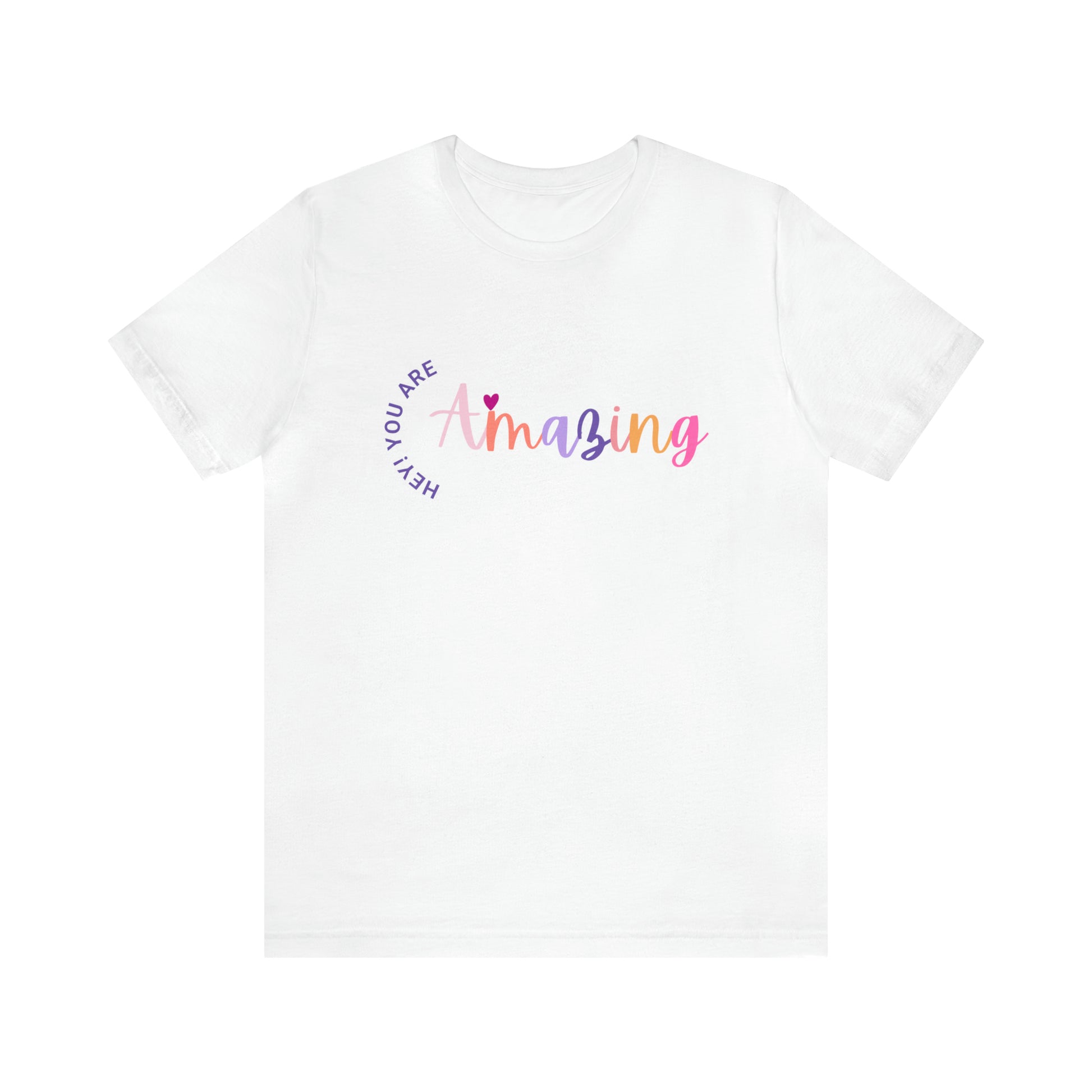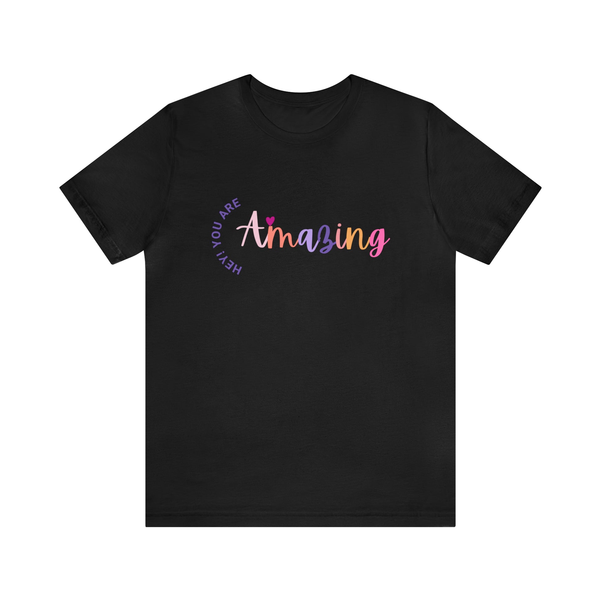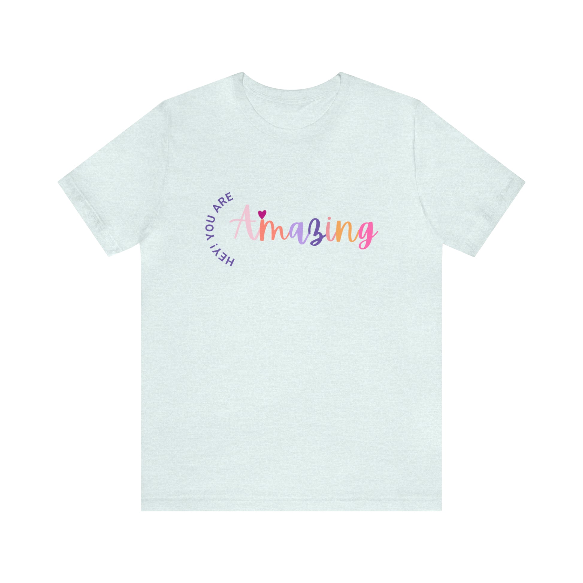 Get inspired with our "Hey You Are Amazing" Unisex Jersey Short Sleeve Tee. This comfortable and stylish t-shirt features a motivational quote design, perfect for men and women alike. Elevate your wardrobe with this inspiring apparel that will remind you of your awesomeness.
