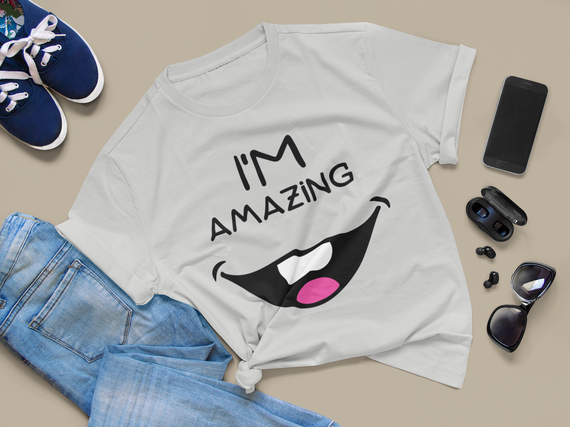 Get ready to show off your amazing smile with our Toothy Smile I'm Amazing Unisex Jersey Short Sleeve Tee. This funny teeth design is printed on a comfortable cotton blend fabric, making it perfect for all-day wear. Express your confidence and stand out from the crowd with this unique smiley face tee. Stay stylish and trendy with our eye-catching tooth-inspired art.