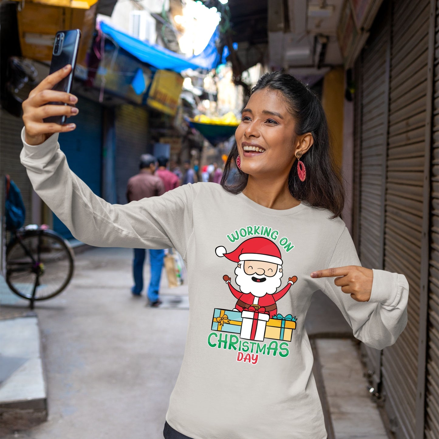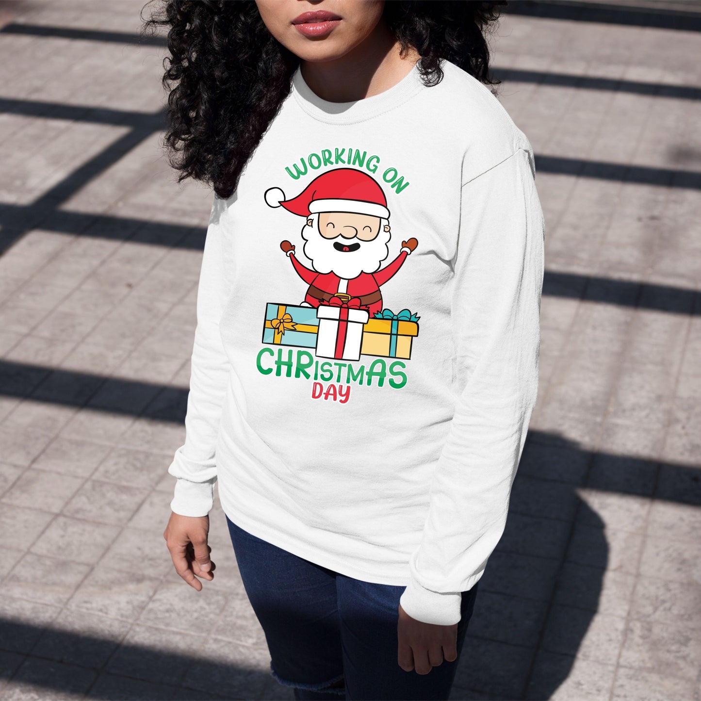 Working on Chirstmas day , Christmas Long Sleeves, Christmas Crewneck For Women, Christmas Present, Christmas Sweatshirt, Christmas Sweater